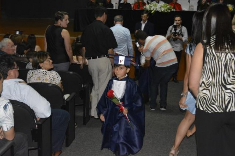 Ontem (8) à noite, o Colégio Univest realizou a formatura da turma de alfabetização 2016. A instituição entregou diplomas aos estudantes que aprenderam a ler e escrever durante o ano. Os diretores, Geovani e Soraya Broering, conduziram a cerimônia. ?Esse é um grande passo na incessante caminhada do conhecimento?, disse Geovani Broering.
