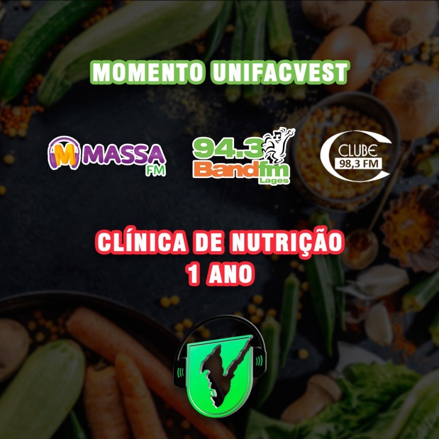 A Clínica de Nutrição está completando seu primeiro ano de atividades no Campus Saúde da Unifacvest. Uma programação de lives entre os dias 24 e 27 de agosto marcará a data. Ouça o Momento Unifacvest e saiba mais!