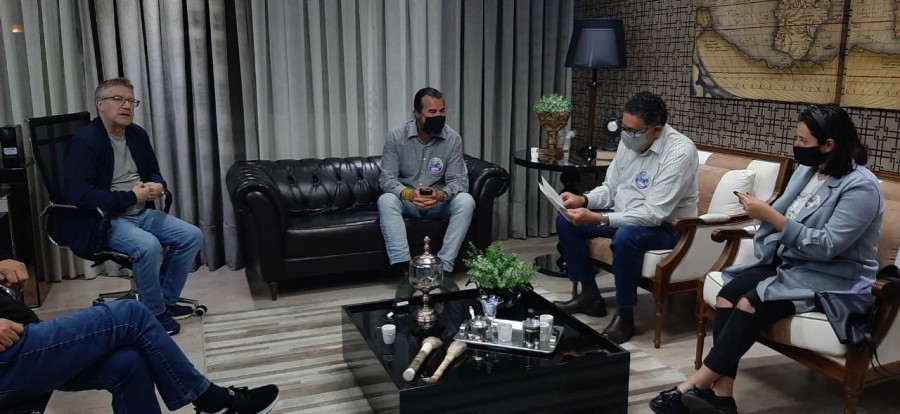 Legenda das imagens: Reitor Geovani Broering em audiência com o candidato Cleimon Dias (PT), Domingos Valente candidato a vice a Evellyn Schulze, assessora de comunicação
