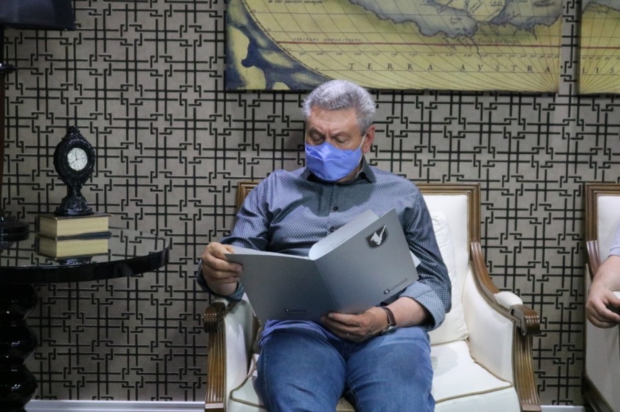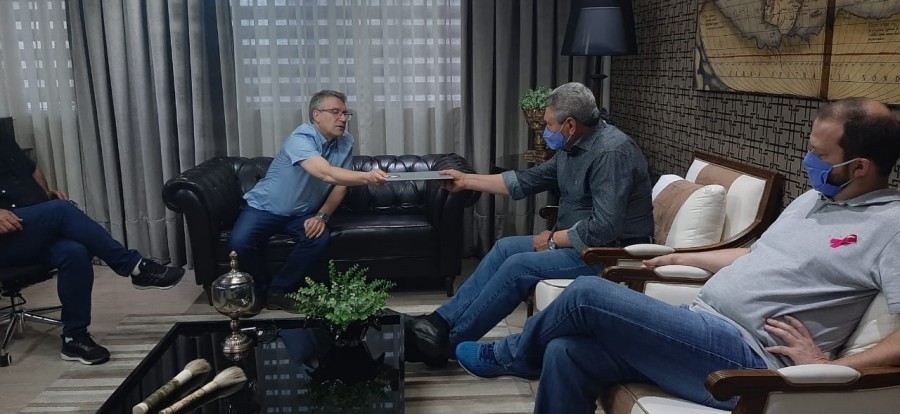 Legenda das imagens: Reitor Geovani Broering em audiência com o então candidato Antonio Ceron (PSD) e Juliano Polese (Progressistas) em 26/10/2020