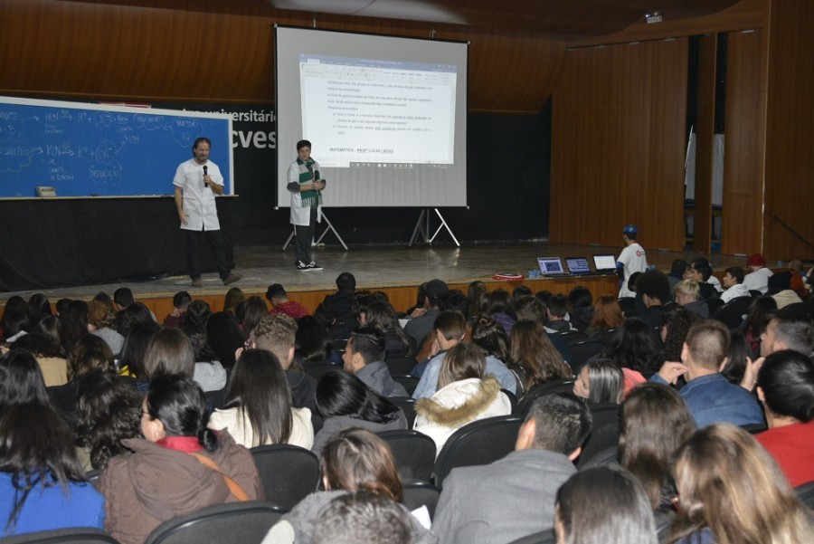 No último sábado (26), o Teatro Unifacvest recebeu jovens de toda a região serrana para um aulão preparatório para o Vestibular de Inverno e o Exame Nacional do Ensino Médio (ENEM).