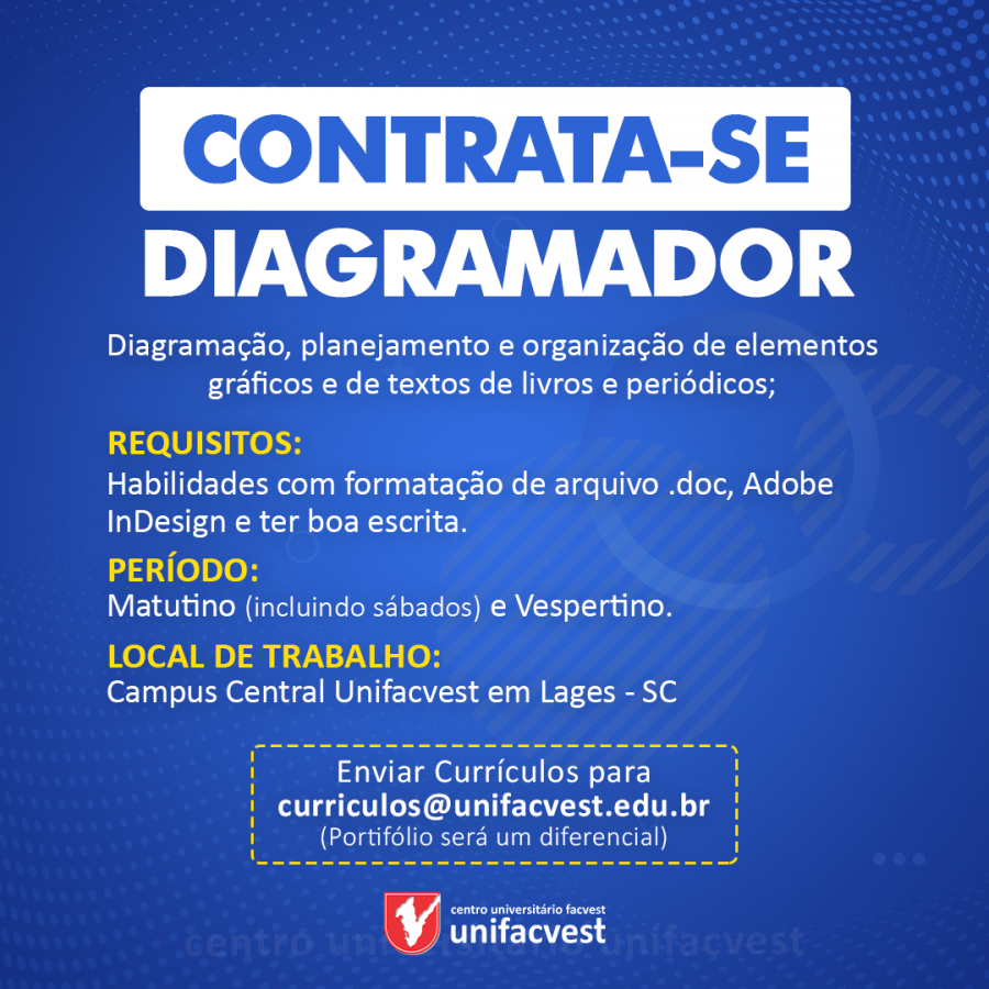 Oportunidade de Trabalho para diagramador no campus central em Lages (SC).