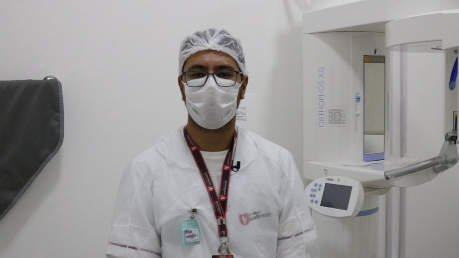 Um dos diferenciais do curso de Radiologia da Unifacvest é a possibilidade da aprendizagem conjunta com os profissionais das áreas específicas de atuação. Na parte prática de radiologia odontológica, os alunos têm interação com os experts daquela área, da mesma forma acontecendo com a radiologia veterinária e com as demais. Isso permite uma aprendizagem focada e de excelência, destaca o professor Felipe Tanikawa.