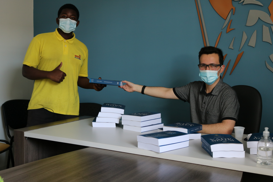 Imagem 1: Acadêmico Cauan Brugnera realizou a entrega dos livros.