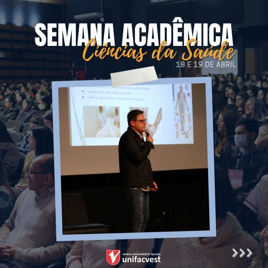 Nos dias 18 e 19 aconteceu a Semana Acadêmica das Ciências da Saúde no teatro da Unifacvest. Na segunda-feira (18), os profissionais da Secretaria Municipal de Saúde de Lages, falaram sobre a importância das Práticas Integrativas e complementares da Saúde (PICS). Os temas abordados pelas enfermeiras, Kelly Antunes e Melyssa Palma, médico e homeopata Júlio César Ozorio, cirurgiões dentistas Cristiane Colpani e Flávio Talhavini, e pela psicóloga Karen Pereira foram acupuntura, auriculoterapia, craniocultura, homeopatia e massoterapia, englobando as PICS.