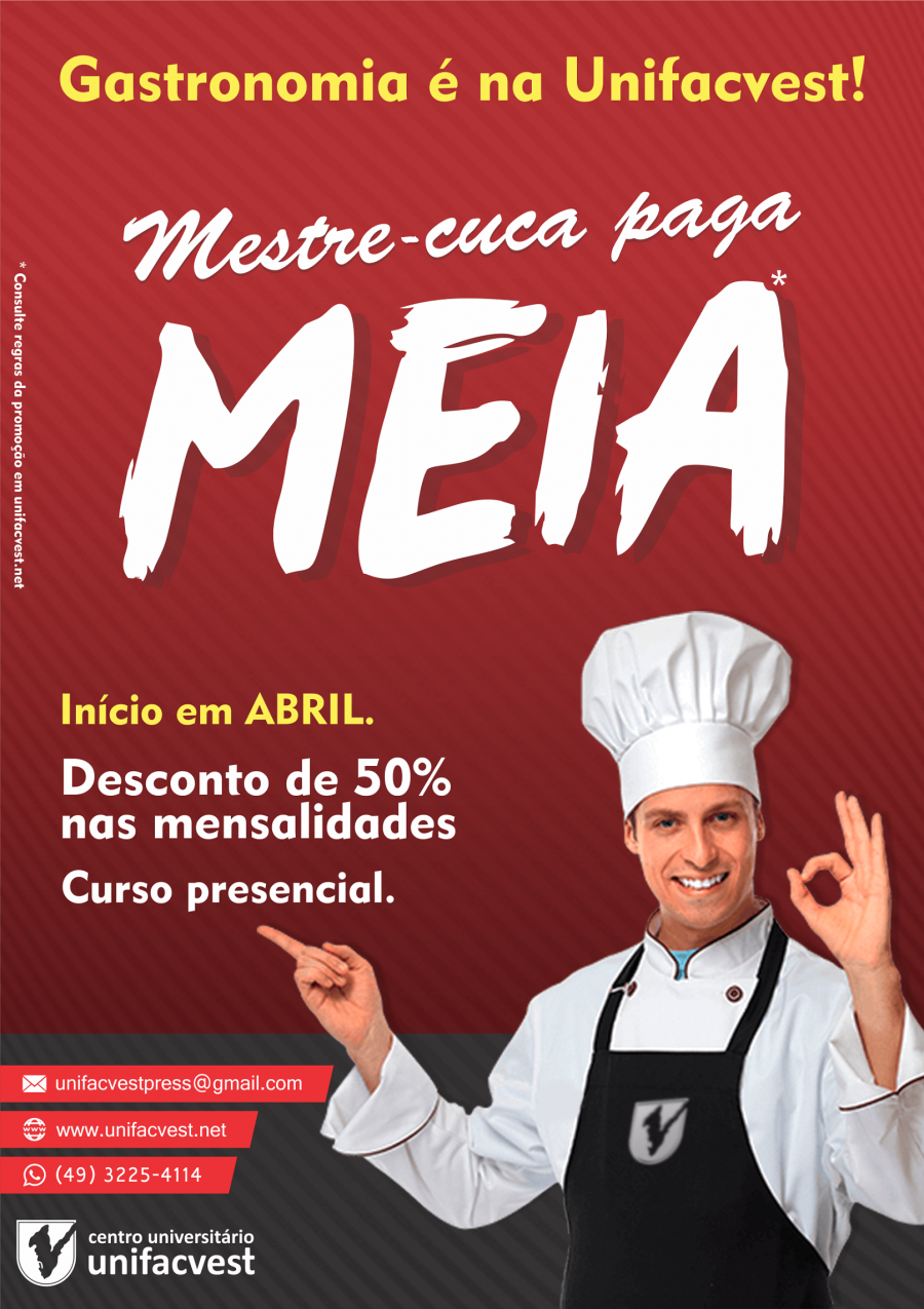 Você é um apaixonado por gastronomia? Tem seu próprio negócio voltado à alimentação ou é um amante da cozinha? Na Unifacvest o mestre-cuca paga meia!