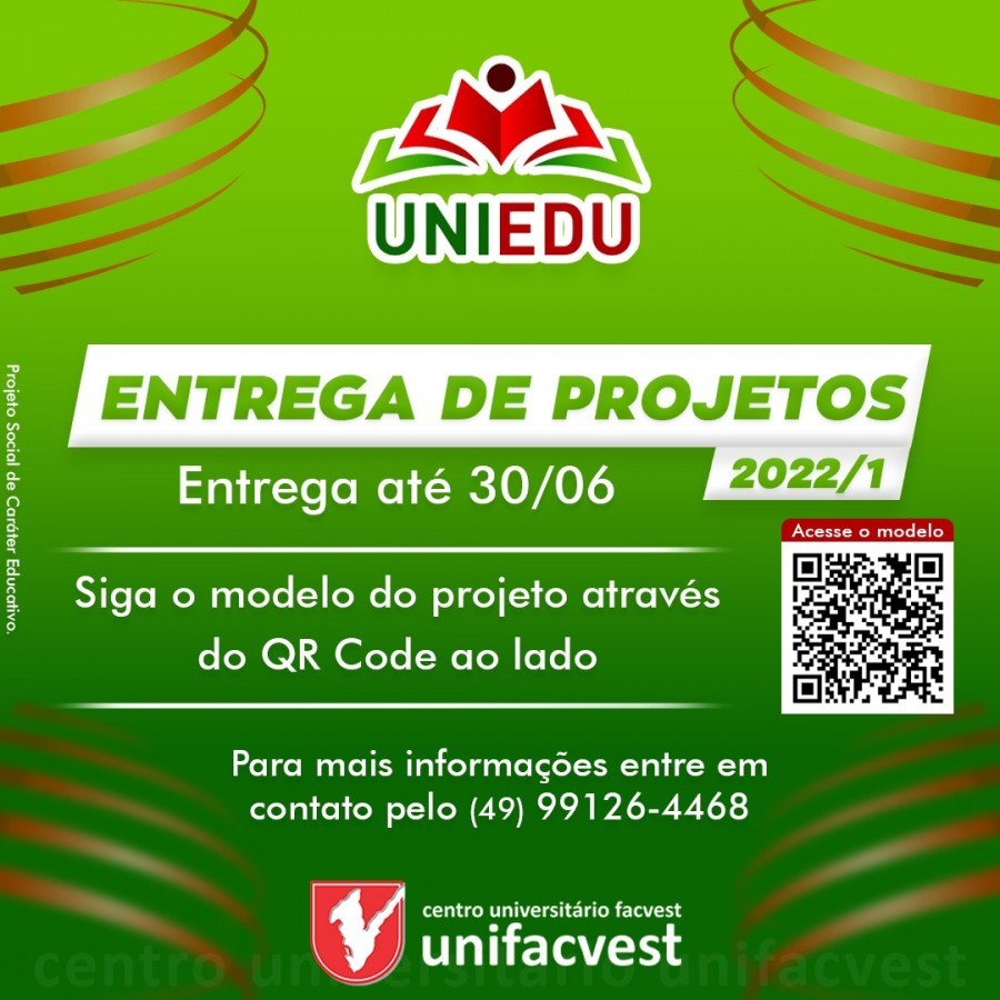 Informações pelo WhatsApp (49) 99126-4468 ou através do e-mail uniedu@unifacvest.edu.br