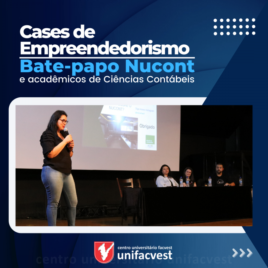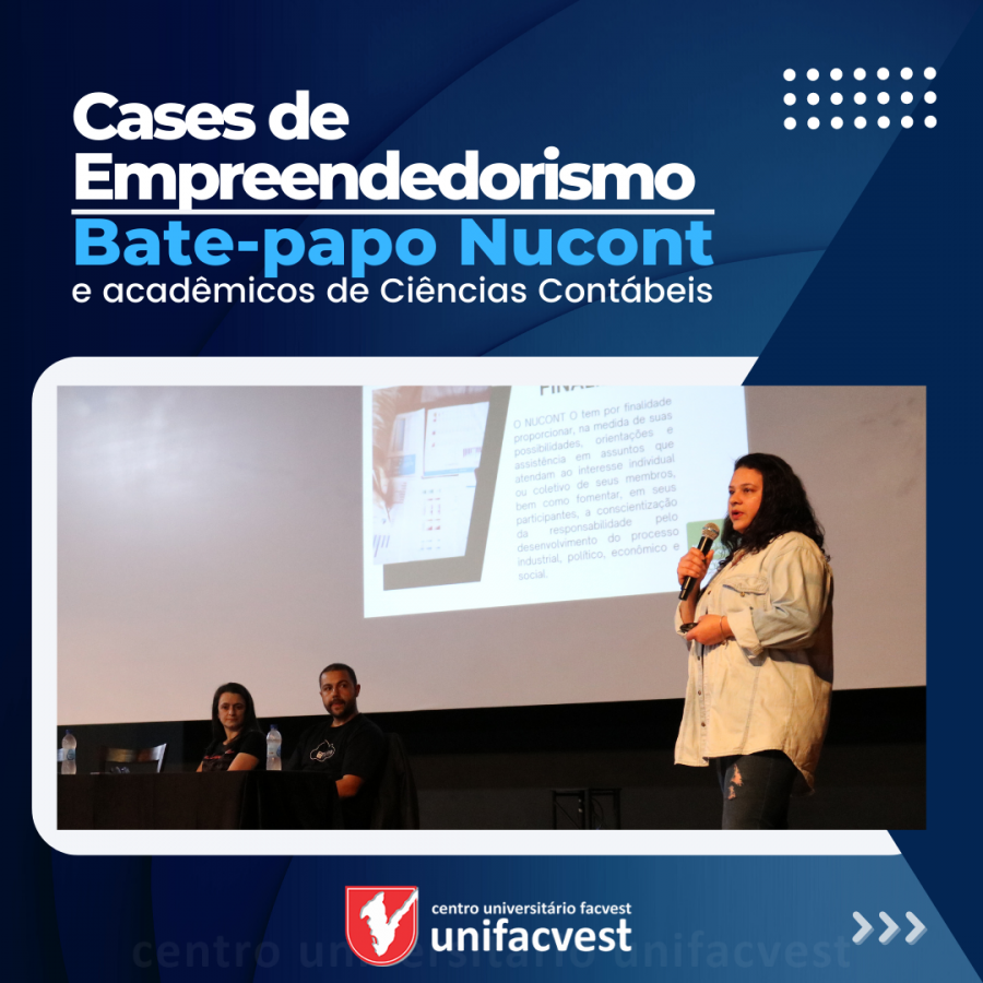 No dia 25 de outubro, os acadêmicos do curso de Ciências Contabéis da Unifacvest, receberam no Teatro da Instituição, profissionais da NUCONT (Núcleo de Contadores da ACIL, de Lages-SC), juntamente com a coordenadora do curso, professora Amanda Miranda. O objetivo do encontro, foi promover um bate papo para exemplificar na prática os conteúdos relacionados à disciplina da professora, especificamente, em relação a Cases de Empreendedorismo, outros temas abordados foram, planejamento tributário, finanças, gestão de riscos, entre outros. Os acadêmicos tiveram a oportunidade de interagir com os profissionais da ACIL, realizando a integração entre os membros da sociedade acadêmica e profissionais, expandindo dessa forma o olhar crítico dos acadêmicos do curso de Ciências Contábeis.