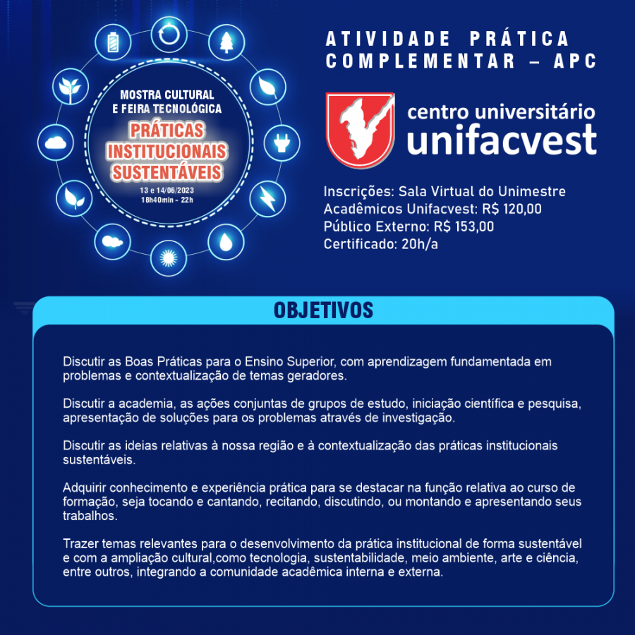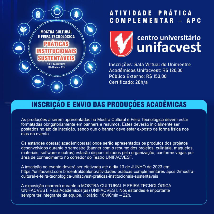 Programa e Inscrições para a Mostra Cultural e Feira Tecnológica da Unifacvest