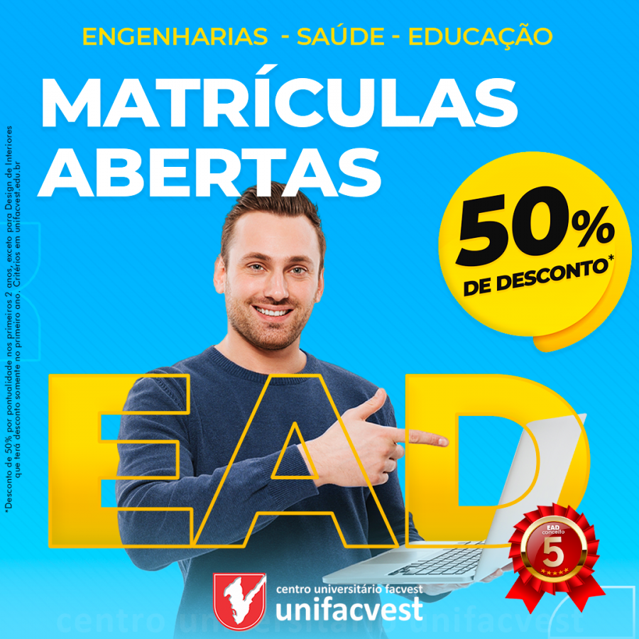 Cursos EAD nas áreas de Engenharia, Educação e Saúde com 50% de desconto*