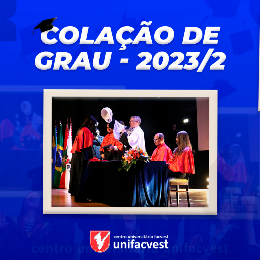 Na noite de quarta-feira, 16 de agosto, no Teatro da Unifacvest, aconteceu a de Colação de Grau de 32 acadêmicos dos cursos de Arquitetura e Urbanismo, Biomedicina, Ciência da Computação, Direito, Educação Física, Enfermagem, Engenharia Elétrica, Farmácia, Fisioterapia, Medicina Veterinária, Odontologia e Psicologia.