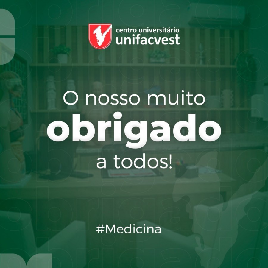 Em nome da Família Broering, Geovani, Soraya, Victor e Júlia e da Comunidade Acadêmica da Unifacvest, manifestamos a nossa gratidão pela Sua valorosa colaboração nesta etapa do processo de autorização do Curso de Medicina. Ao mesmo tempo, comunicamos que a Comissão que esteve presencialmente nos dias 20, 21 e 22 de setembro, atribuiu ao Curso de Medicina o conceito máximo: 5 (escala de 1 a 5 - em que conceito 3 é satisfatório e conceitos 4/5 são excelentes).