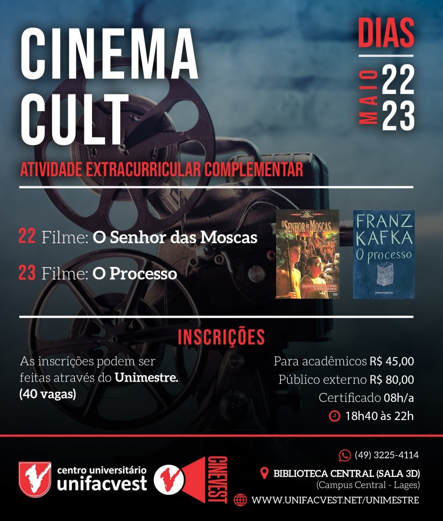 Inicia hoje, na sala de cinema 3D da Biblioteca Central da Unifacvest a Mostra de Cinema Cult
