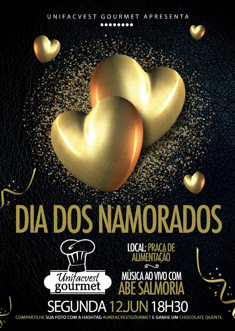 O Centro Universitário Unifacvest promoverá um grande evento para celebrar o Dia dos Namorados. O espaço Unifacvest Gourmet será preparado para receber os casais apaixonados na próxima segunda-feira (12). O evento terá a participação do cantor Abe Salmoria, do Malbec Trio.