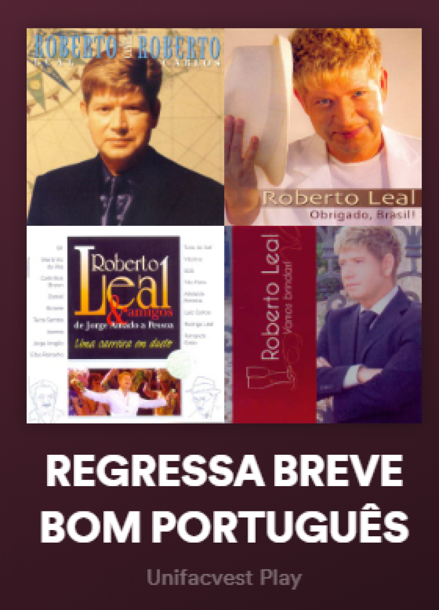 O embaixador da cultura portuguesa no Brasil, António Joaquim Fernandes, o consagrado artista Roberto Leal (Macedo de Carvalho, 27/11/1951 - São Paulo, 15/09/2019) foi o expoente maior da integração moderna do Brasil com a sua origem além-mar. A Unifacvest Play cria hoje, no Spotify, a Playlist “Regressa Breve Bom Português”, em alusão à música “Verde Vinho”, da primeira faixa, com a sua interpretação magnífica da letra de Paulo Alexandre. A frase título da playlist, com 148 músicas, é uma singela homenagem em reconhecimento ao carinho depositado pelo artista ao nosso povo e à nossa cultura. Traz o reconhecimento do artista ao país no álbum “Obrigado Brasil”. Ouça no nosso canal Unifacvest Play no spotify: