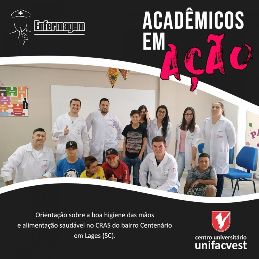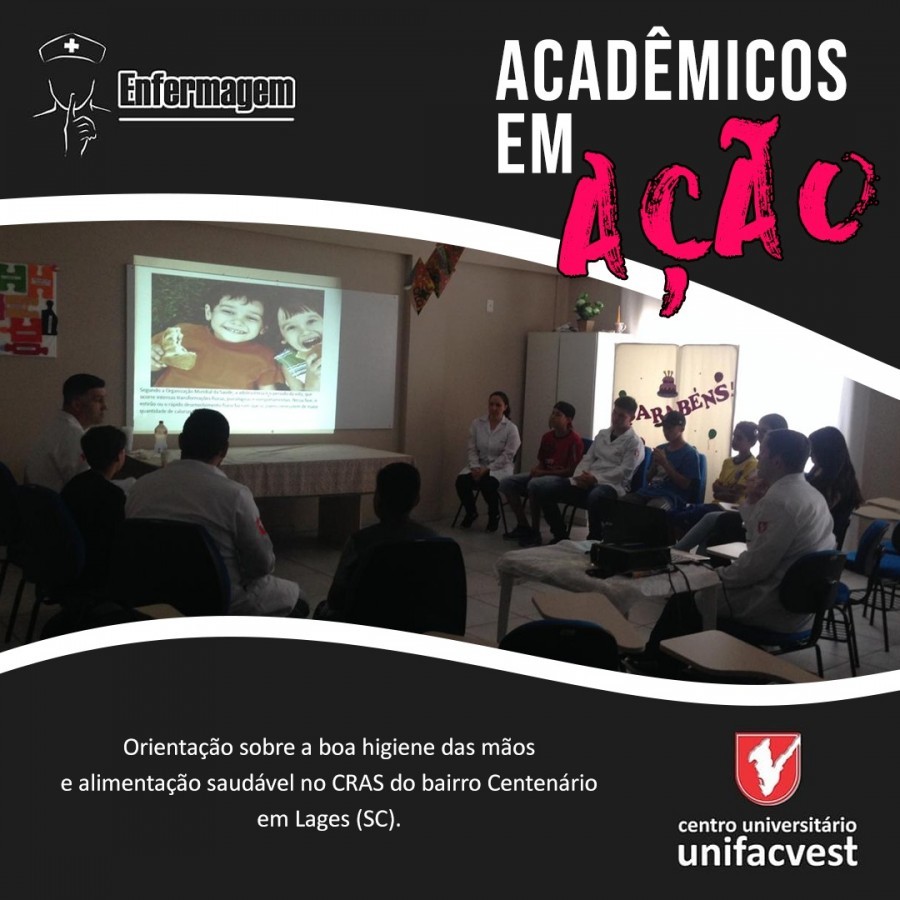 Atividade de orientação desenvolvida pelos acadêmicos do Curso de Enfermagem da Unifacvet, no CRAS do bairro Centenário, em Lages (SC), com adolescentes de 11 a 14 anos.