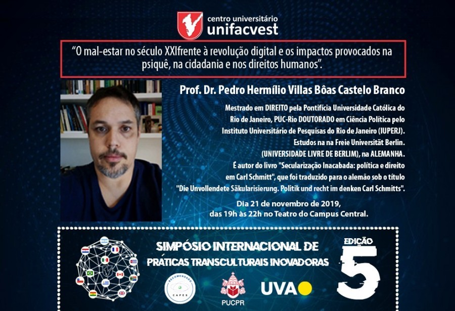 Palestra com o Prof. Dr. Pedro Hermílio Villas Bôas Castelo Branco dia 21, no V Simpósio Internacional da Unifacvest.