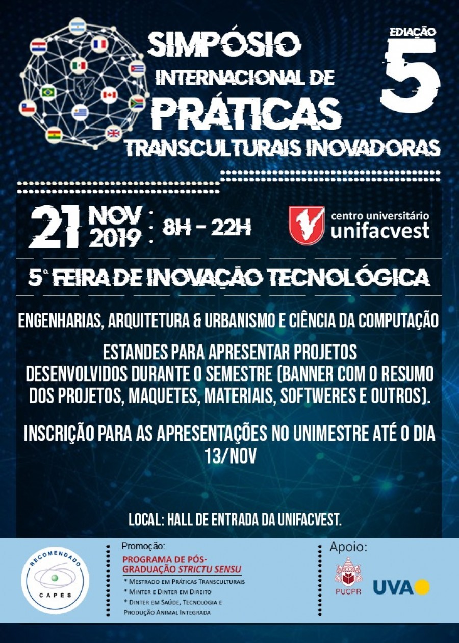 Confira durante o V Simpósio Internacional a Feira de Inovações Tecnológicas no Hall de entrada da Unifacvest.