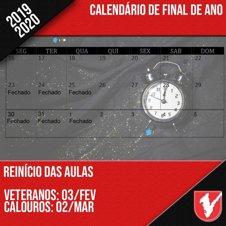 A secretaria acadêmica estará em recesso de 19/12/2019 a 26/01/2020.