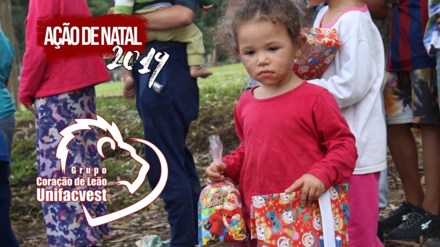 O Grupo Coração de Leão, formado por funcionários da Unifacvest, agradece aos acadêmicos que doaram os presentes para fazer feliz o Natal de 5.000 crianças dos bairros Morro Grande, Santa Catarina, Centenário, Araucária, Santa Clara e Novo Milênio da cidade de Lages (SC).