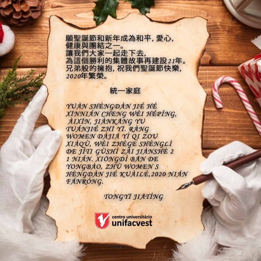 Que o Natal e o Novo Ano sejam de Paz, Amor, Saúde e Solidariedade. Caminhemos todos juntos construindo esta história vitoriosa e coletiva por mais 21 anos. Um abraço fraterno com nossos votos de um Feliz Natal e próspero 2020.