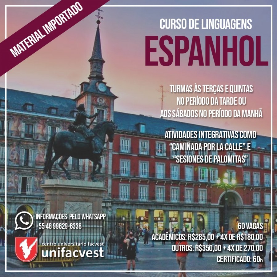 Conheça nossos cursos de línguas e faça já a sua matrícula. Material importado com preço de custo incluído na primeira mensalidade, exceto para Inglês Instrumental. Info pelo WPP +55 48 996 296 338 #VemPraUnifacvest Produção Unifacvest Press