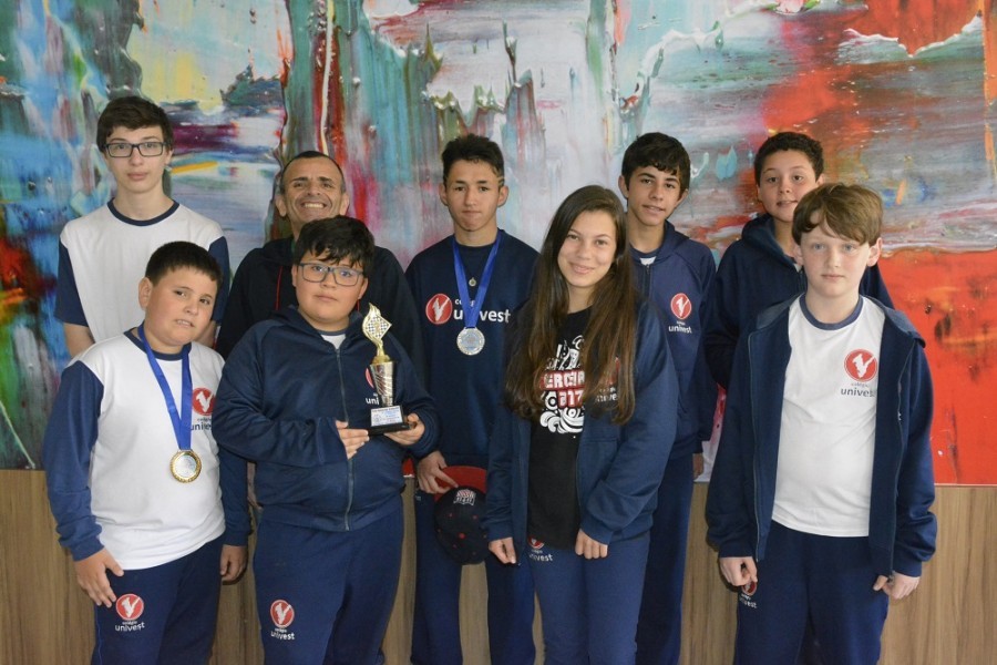 Alunos do Colégio Univest integraram a equipe de Lages na 8ª etapa da Liga Oeste de Xadrez, em Lacerdópolis. E eles ajudaram o município a conquistar o terceiro lugar geral na competição.